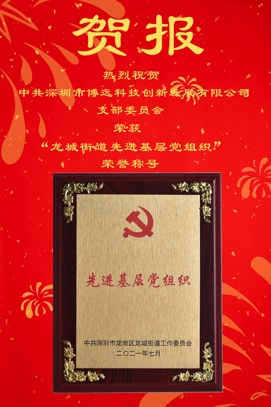 熱烈祝賀中共深圳市博遠科技創(chuàng)新發(fā)展有限公司支部委員會榮獲“龍城街道先進基層黨組織”榮譽稱號